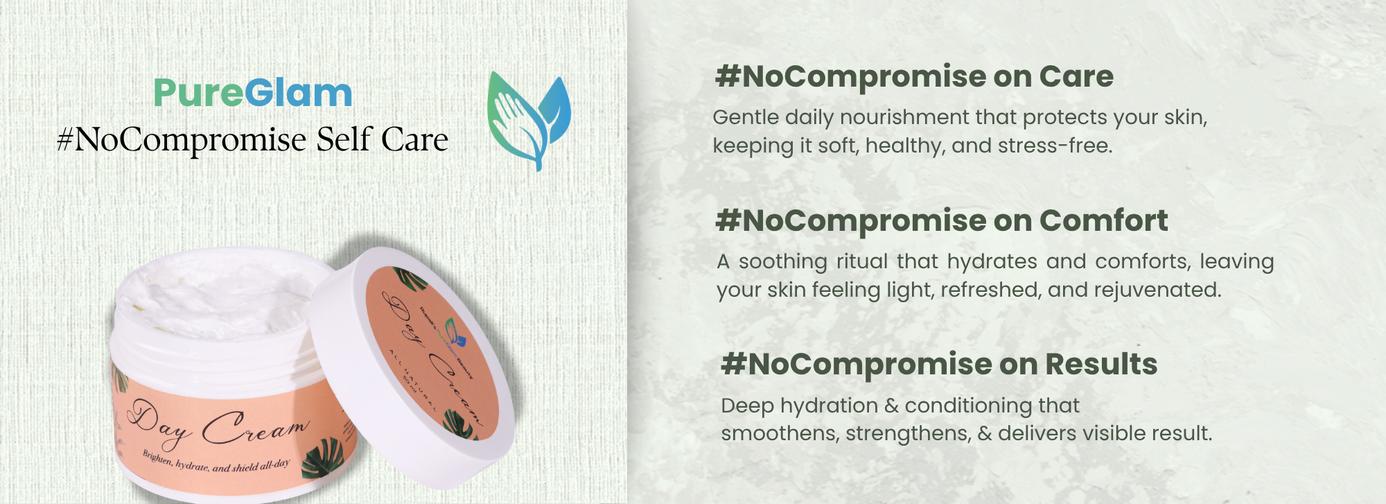 Start your mornings with the nourishing touch of PureGlam’s Day Cream. Enriched with skin-loving actives, soothing aloe vera, and protective UV filters, this lightweight cream hydrates deeply while shielding your skin from daily environmental stress. Regular use helps brighten skin, reduce dullness, and keep your complexion soft, radiant, and protected throughout the day.