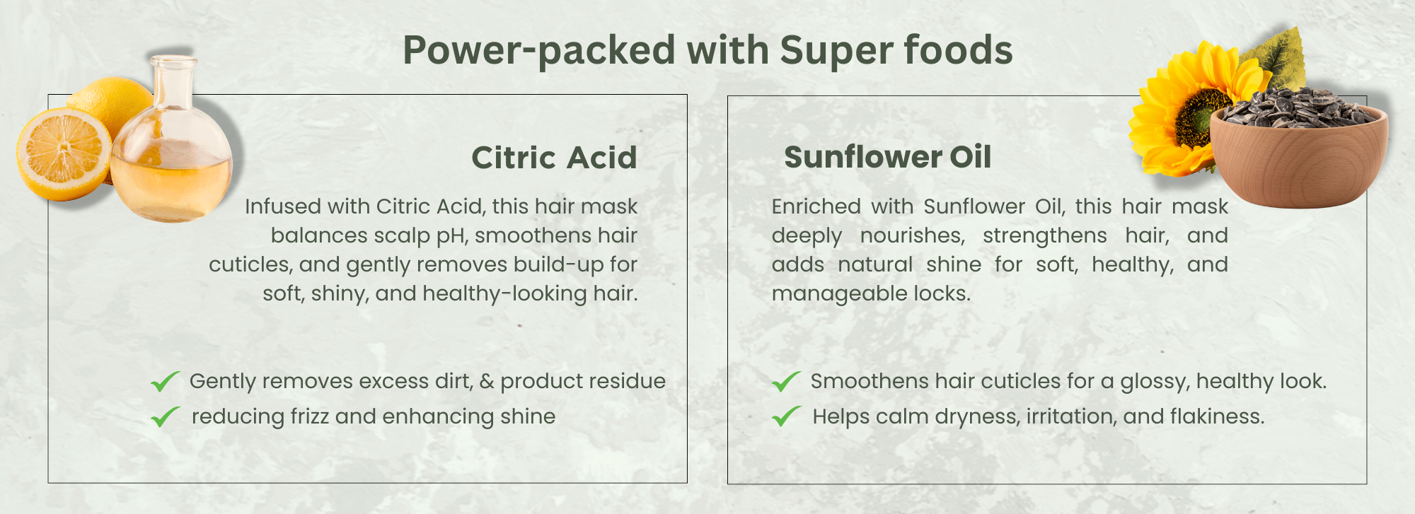 ✅ Sunflower Oil is rich in fatty acids that nourish and add natural shine.