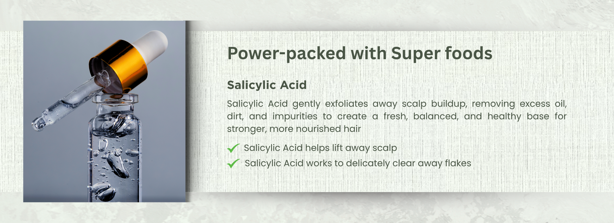 ✅ Salicylic Acid gently exfoliates scalp buildup for a clean base